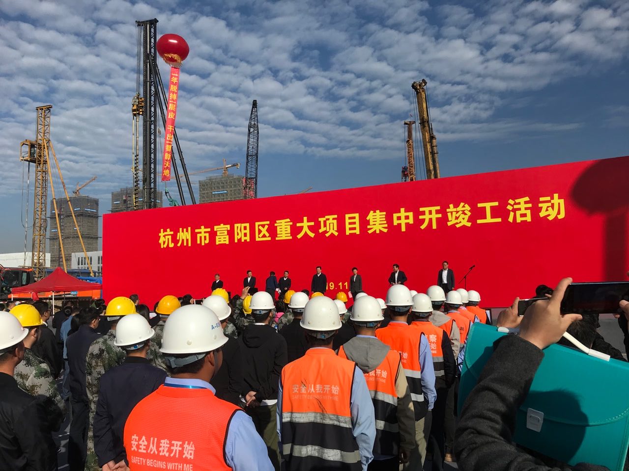 2019年11月15日,杭州市富陽區(qū)舉辦重大項(xiàng)目集中開竣工活動(dòng),華神消防富陽研發(fā)生產(chǎn)基地建設(shè)項(xiàng)目(位于富春灣新城靈橋鎮(zhèn))作為此次集中開竣工企業(yè)之一,周建國(guó)董事長(zhǎng)攜公司管理團(tuán)隊(duì)參加。